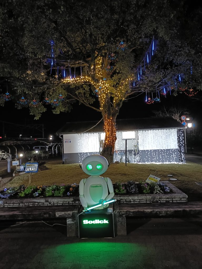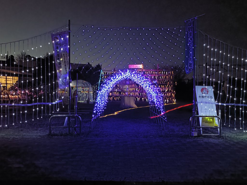 公園内には、大きな大根やぐらが設置され、約400個の大根レプリカが交互に点滅。駅前イルミネーションの象徴として、訪れる人の目を楽しませています。